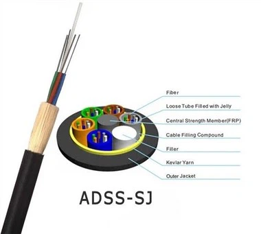 Fib yo, 250μm, yo pozisyone nan yon tib ki lach ki fèt ak yon plastik modil segondè. Tib yo plen ak yon konpoze ranpli ki reziste dlo. Yon Plastik Fibre Ranfòse (FRP) lokalize nan sant la nan nwayo kòm yon manm fòs ki pa metalik. Tib yo (ak file) yo bloke alantou manm fòs la nan yon nwayo kontra enfòmèl ant ak sikilè. Apre yo fin aplike yon baryè imidite aliminyòm Polyethylene Plastifye (APL) alantou nwayo kab la, kab la fini ak yon djenn PE.